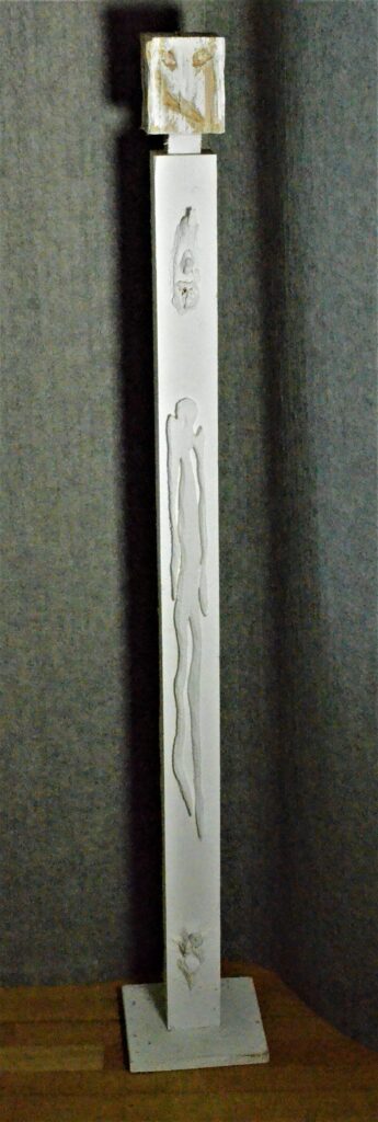 Stelen: Holz, Gouache, Styropor, Draht, Textil, Naturmaterialien